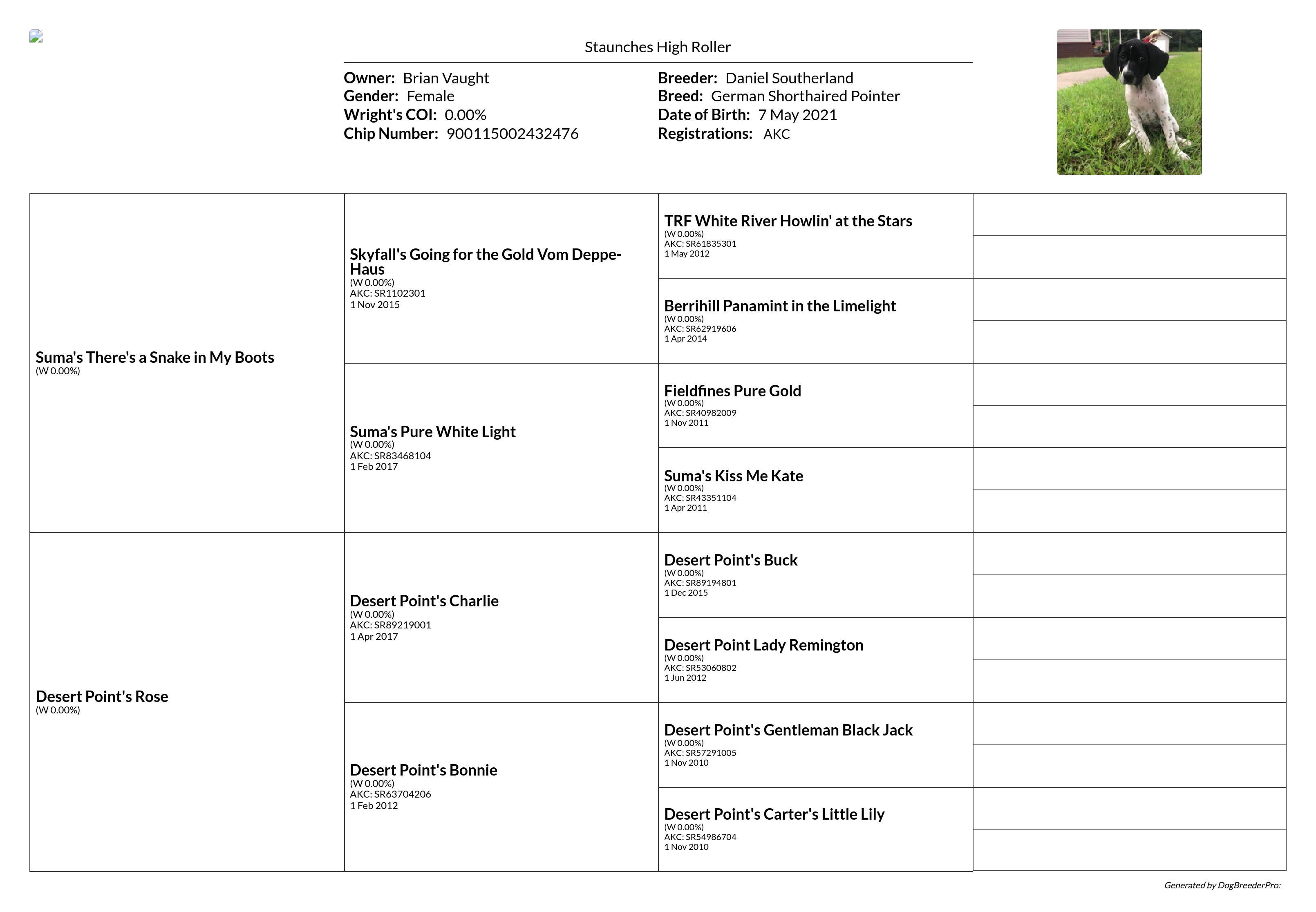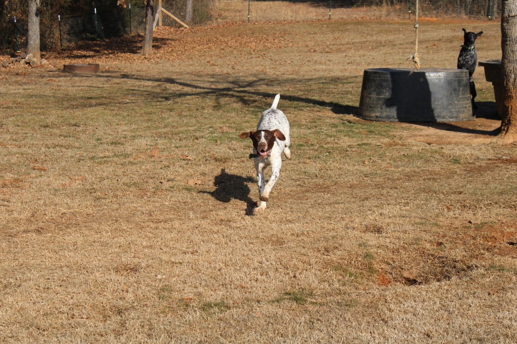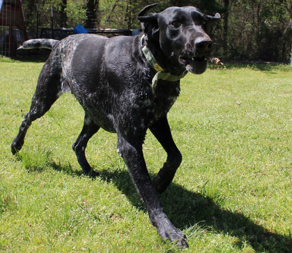Happy got her name because she’s happy all the time! Happy is a black roan, beautiful GSP. Happy spends her days swimming, pointing birds, aggravating her brothers and sisters and fetching ducks.